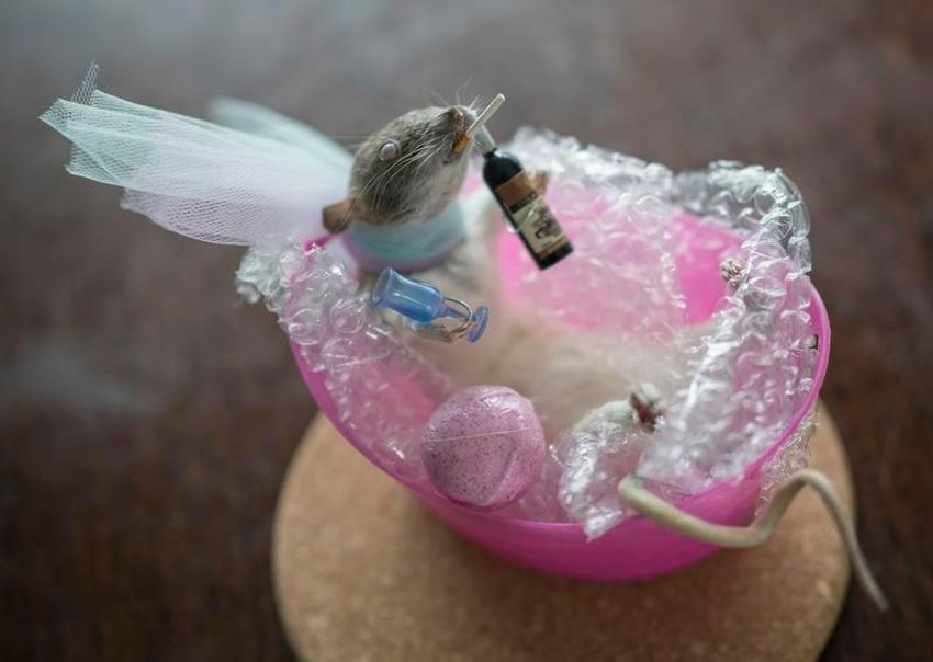 Ankixa Risk places a frozen rat onto the old food tray in front of me, then does the same for the others in this taxidermy workshop. I look past its dead eyes and examine the white and grey fur, needle sharp teeth and tiny pink hands and feet. As a first time taxidermist, I am going to learn how to give this sad looking rat human qualities in Risk’s daylong anthropomorphic rat workshop.