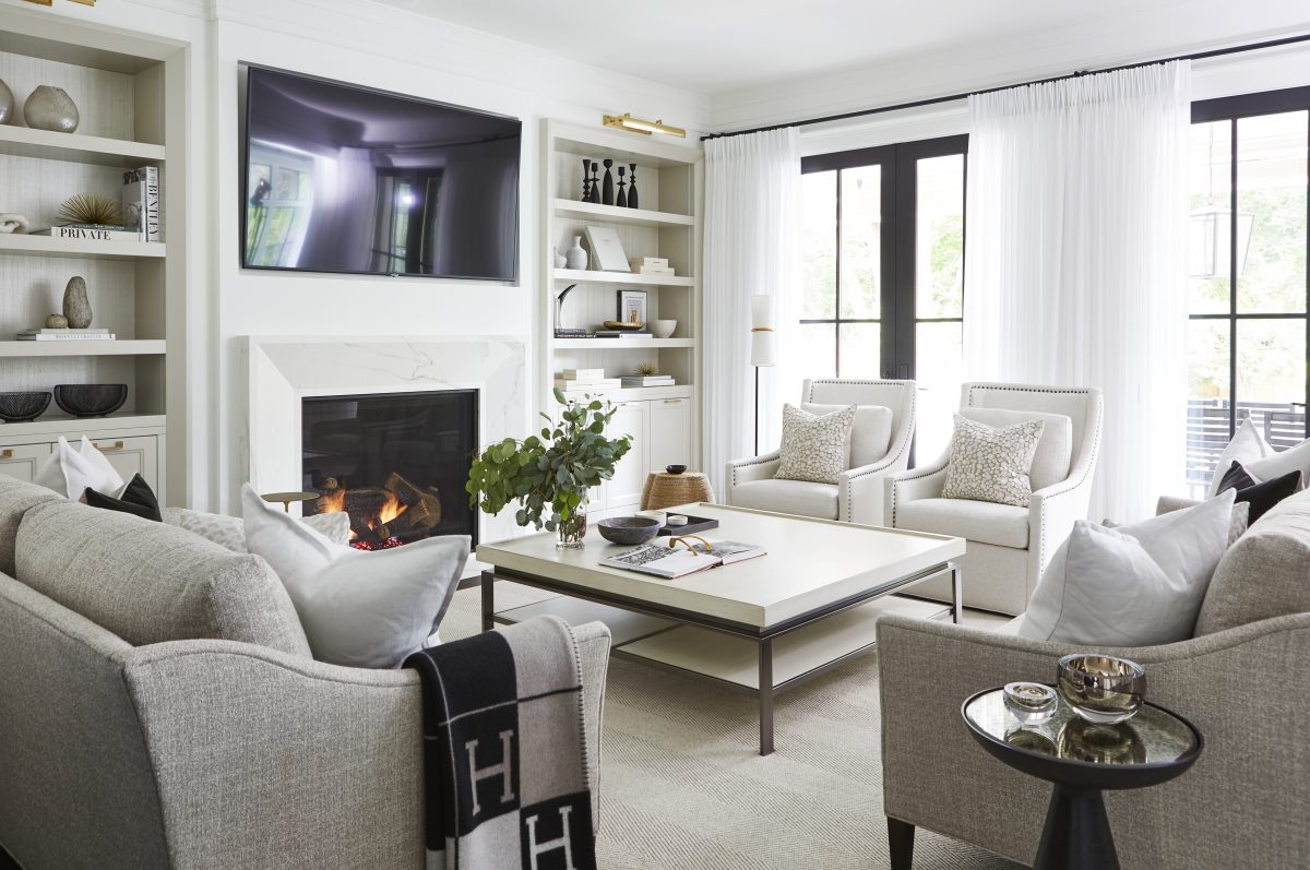 A light fixture descending like a star from a soaring ceiling draws the gaze upward as one steps through the front door of a stunning new home built close to the shores of Lake Ontario in Oakville.